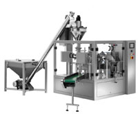 旋轉(zhuǎn)式給袋式自動包裝機適用于平面袋,自立袋,拉鏈袋等各種形狀的熱封的復(fù)合袋.